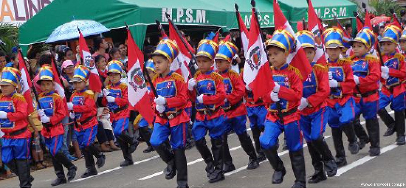 Inmediatamente después se inició el desfile de las delegaciones de instituciones educativas de Inicial, Primaria y Secundaria en medio del entusiasmo de los padres de familia y la numerosa concurrencia que desde muy temprano se encontraba en las inmediaciones del estrado oficial para alentar a los niños, niñas y jóvenes de las instituciones educativas que mostraron marcialidad y enorme espíritu cívico de participación.