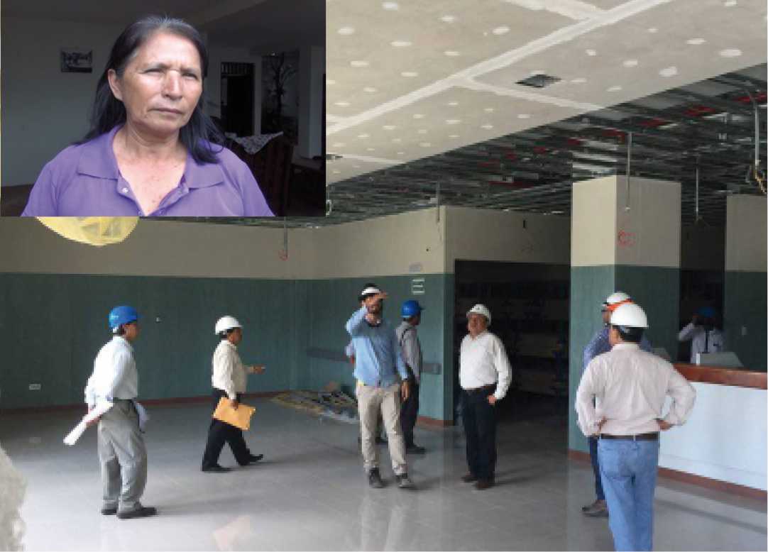 Durante este recorrido observaron retrasos en la colocación de baldosas para el techo de todo el nosocomio y la carencia de energía eléctrica definitiva para la obra, situación que genera la demora en la instalación y puesta en marcha de los equipos biomédicos. Situación que la empresa encargada de la construcción Consorcio San Martín, a través de Incot, evidenciaba, con la presencia de poco personal en los trabajos, algo que fue corroborado con la visita de funcionarios de la Dirección General de Inversión Pública del Ministerio de Economía y Finanzas, encabezada por su director general, Eloy Duran Cervantes, así como del viceministro de Salud, Pedro Grillo Rojas, éstos observaron un número reducido de trabajadores, defectos en los acabados y la no instalación de equipos el pasado 17 de marzo.