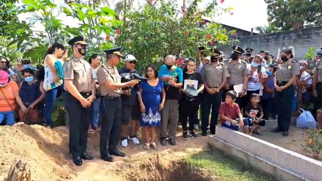 A la ceremonia fúnebre asistió el jefe de la XI Macro Región Policial San Martín, general Luis Oliveiro Chumpitaz, quien confirmó a los familiares que los peritos de criminalística manejan dos hipótesis, uno sería por tema pasional y el segunda por resistencia al robo de su motocicleta. Los familiares volvieron a solicitar que investiguen a la joven que esa noche lo estaba acompañando.