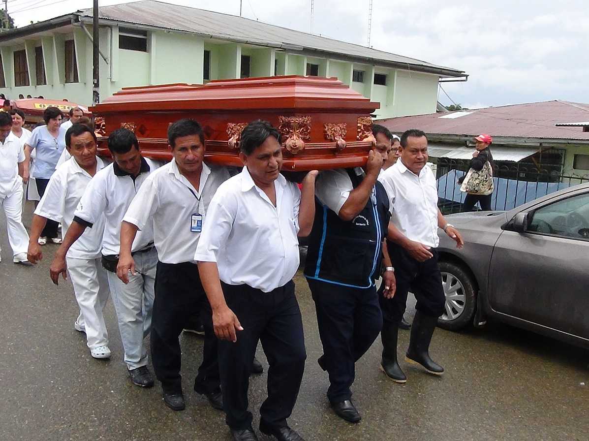 El exdirigente sindical fue sepultado a las cinco de la tarde en el cementerio general de Tarapoto, adonde asistieron sus compañeros de trabajo y los principales dirigentes de la Federación Nacional Unificada de Trabajadores del Sector Salud (FENUTSSA). (Hugo Anteparra)