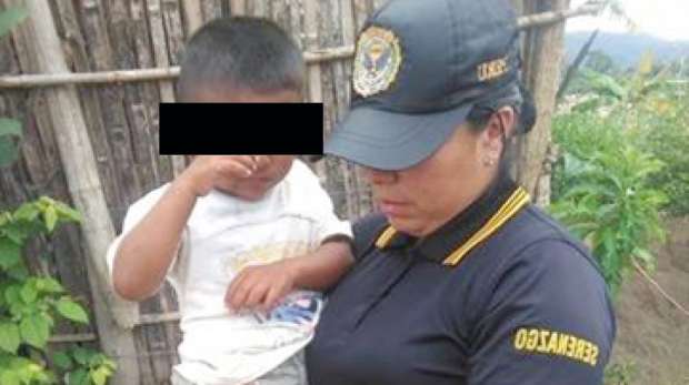 Moyobamba. Al promediar las 10 de la mañana ante el llamado de los vecinos, efectivos de serenazgo se trasladaron hasta el sector Los Pinos, donde se daba cuenta que un niño de 3 años hace dos días había sido abandonado por sus padres sin que nadie lo cuide, siendo los moradores quienes le han compartido comida durante este tiempo, sin embargo ante la no presencia de ningún familiar dieron parte a serenazgo que junto a la trabajadora social del Centro Emergencia de Moyobamba Dra. Mercedes Arcos llegaron para rescatar al menor que se encontraba con la ropa sucia y llorando.