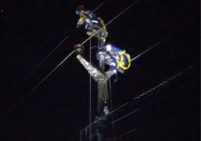 Cuadrillas de trabajadores de Electro Oriente trabajaron hasta las horas de la noche para restablecer el servicio eléctrico a Yurimaguas