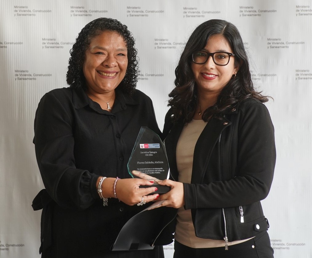 La Secretaria General del MVCS, Paola Liliana Lobatón Fuchs, en representación del Ministro Durich Francisco Whittembury Talledo, hizo entrega del reconocimiento a la Ing. Melissa Flores Saldaña, como servidora civil integra del Ministerio de Vivienda Construcción y Saneamiento del 2024, por su comportamiento integro en su desempeño laboral, en cumplimiento del Código de ética de la Función Pública.