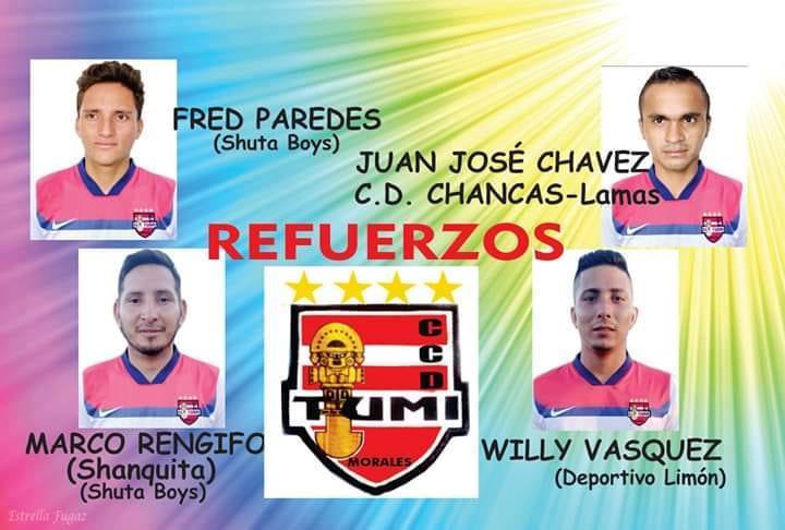 No solamente el Tumi se basó en la contratación de este experimentado jugadores que proviene de la liga de futbol de Tarapoto defendiendo los colores del Shuta Boys del barrio Huayco, sino también miraron otros chicos que podrían aportar en la etapa provincial, como es el caso de Juan José “Chuki” Chávez que proviene de Los Chankas de Lamas, Willy Vásquez del Deportivo limón y Freed Paredes del Shuta Boys.