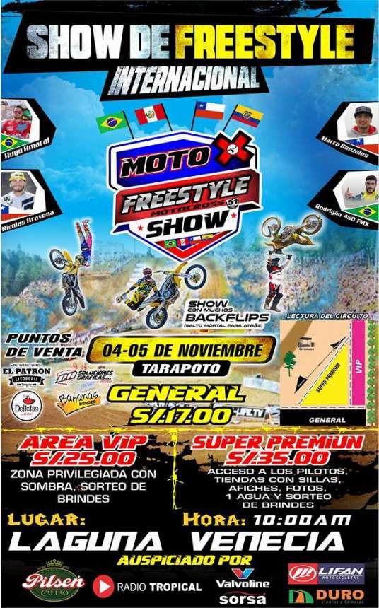 No cabe duda que este 4 de noviembre en Laguna Venecia se realizará el Show de Freestyle Internacional con la presencia de los mejores exponentes del Motocross y Freestile de nivel nacional e internacional por lo que es obvio que será un show que promete dar espectáculo.