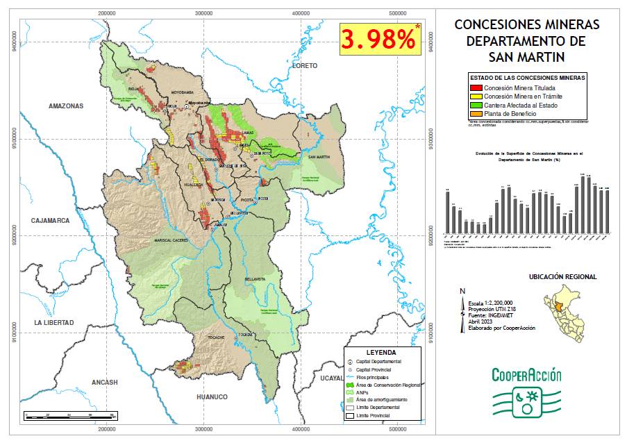 Un dato que enciende las alertas: en Shunté existen 43 derechos mineros titulados por el Instituto Geológico, Minero y Metalúrgico (Ingemmet) y 31 derechos mineros en trámite. Además, el Gobierno Regional de San Martín tiene tres expedientes en evaluación.