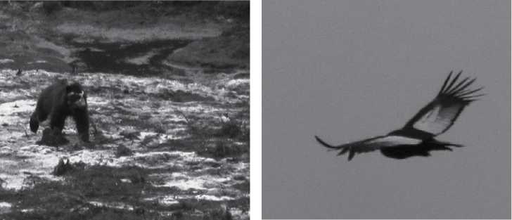 A pocos minutos de iniciada la jornada, aparece frente a nosotros un cóndor andino, aquel carroñero de gran tamaño, que aquí tiene la fama de comer también algunos becerros, a los que coge sin ningún esfuerzo. La foto la realiza el viejito, Jeremías, quien tiene la forjada habilidad de descubrir huellas en la comida de los animales e incluso en su excremento; ello pues antes, cuando niño, caminaba estas soledades junto a su padre, un cazador que murió hace diez años, cuando una gran creciente de la quebrada Virgen se llevó el puente que unía su casa con las demás. El viejo quiso salvar ese vínculo y fue arrastrado.