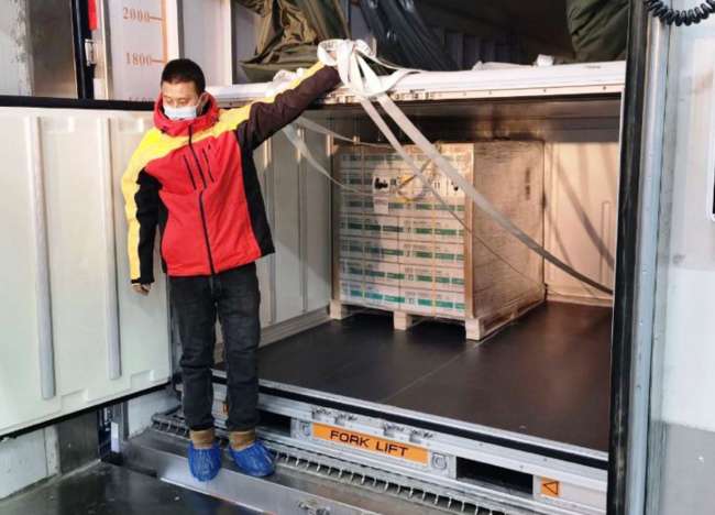Texto de Imagen: Primer embarque de vacunas hacia el Perú