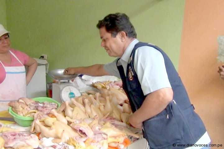Por segundo día consecutivo, representantes del Servicio Nacional de Sanidad Agraria (SENASA) y de la comuna tarapotina, volvieron a visitar a los vendedores de pollos eviscerados de los centros de abastos, a fin de conocer la procedencia de esos productos.