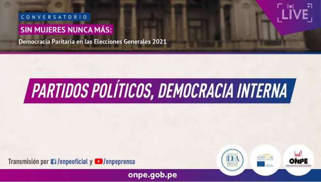 En el marco de la conmemoración del Día Internacional de la Mujer, la Oficina Nacional de Procesos Electorales (ONPE) y el programa de la Unión Europea EUROsociAL+ realizaron el viernes 12 de marzo el conversatorio virtual “Sin mujeres nunca más: Democracia Paritaria en las Elecciones Generales 2021”.