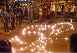 A las 8 y 30 del pasado sábado Los Boys Scouts, encendieron velas retratando una flor de liz, que es su símbolo mundial, de esta manera apoyaron a la Hora del Planeta en Tarapoto, que salvo por esta actividad pasó lamentablemente desapercibida.