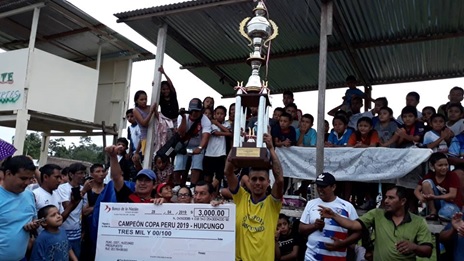 Huicungo. En reñida competencia Sport “Huicungo” se coronó campeón de la COPA PERÚ” 2019 “Watson Ríos García”. Este equipo deportivo por primera vez saborea la copa huicunguina y promete seguir trabajando para representar a Huicungo en la II ETAPA INTERDISTRITAL. Como Subcampeón quedó “Defensor Pajatén”. También se premió al arquero menos batido y al jugador que anotó la mayor cantidad de goles durante el campeonato. El acto contó con la presencia del alcalde distrital Rodil Cachique Capillo quien como padrino general en nombre de la municipalidad donó los trofeos y los premios económicos. Con anterioridad la autoridad edil donó también los uniformes deportivos que vistieron los seis clubes participantes. (Carlo Augusto)
