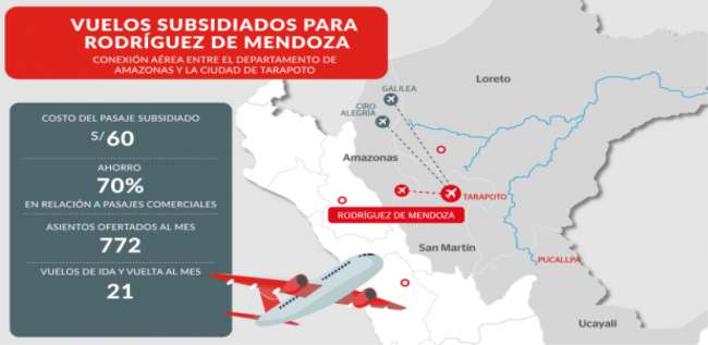 Los residentes de Rodríguez de Mendoza, provincia de la región Amazonas, tendrán a su disposición una nueva alternativa para trasladarse a la ciudad de Tarapoto, región San Martín. Antes de fines de enero, el Ministerio de Transportes y Comunicaciones (MTC) suscribirá el contrato de operación que ofrecerá pasajes aéreos subsidiados en la ruta Rodríguez de Mendoza – Tarapoto.