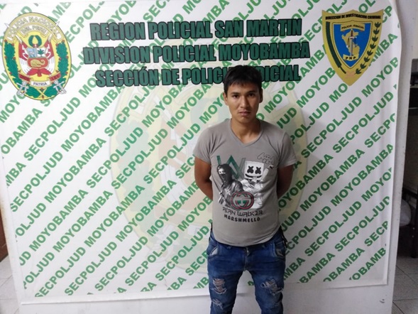Moyobamba. Wilian Vásquez Pérez (23), sujeto que la madrugada del viernes último fuera tenido por efectivos de la Policía Nacional e la Comisaría de Pucará – Jaén (Cajamarca), la una de la madrugada de ayer lunes arribó a la ciudad de Moyobamba, siendo ingresado al calabozo del Departamento de Investigación Criminal-DEPINCRI Moyobamba. Con el desarrollo de la diligencia preliminar a cargo del representante del Ministerio Público en las próximas horas será puesto a disposición de las autoridades judiciales.
