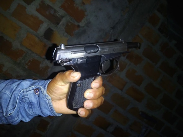 Gracias a la rápida reacción de un grupo de personas que lograron abalanzarse contra el sujeto, quien fue reducido y quitado el arma de fuego, ante el incidente se comunicó el caso a la policía del distrito de Soritor quienes llegaron al lugar identificando esta persona como Erlin Muñoz Chávez de 24 años de edad, encontrándose además en su poder una pistola CZ Broni de 9 milímetros.