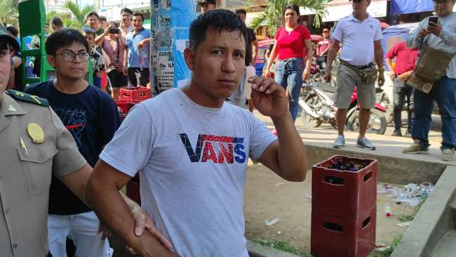 Ayer por la tarde vecinos de la cuadra siete del jirón Tahuantinsuyo de Tarapoto, intervinieron a un sujeto sindicado de pretender robar en un almacén de bebidas, sin embargo, otros comerciantes también lo señalaron de haberles hurtado productos de sus puestos de venta. Testigos del hecho querían hacer justicias con sus propias manos para darle un escarmiento.