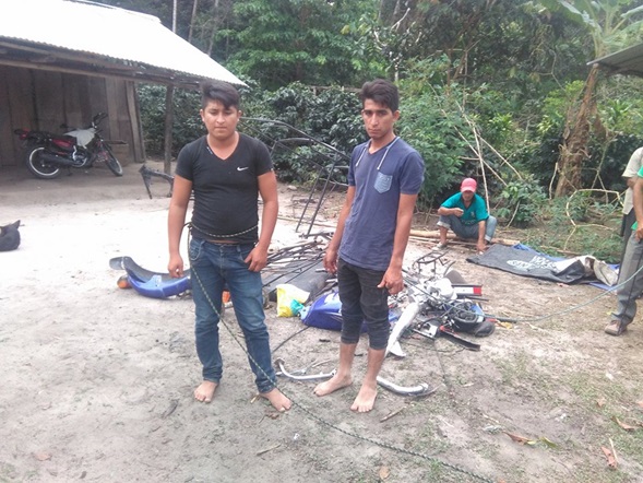 Como se recuerda fueron detenidos la noche del lunes 19 del mes en curso cerca de la localidad de Juningue momentos en que dentro de un saco color negro trasladaban el motor de una mototaxi, pese a que intentaron darse a la fuga terminaron en manos de los ronderos quienes luego de los interrogatorios ubicaron el lugar donde fue desmantelada una mototaxi marca Lifan 150 color azul.