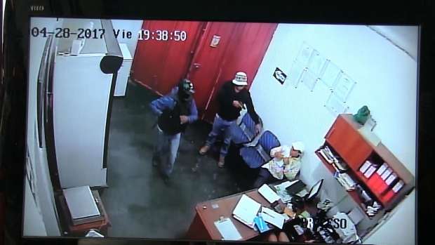 Tarapoto. La inseguridad ciudadana sigue poniendo en zozobra a la población, en imágenes de video vigilancia se observa cuando dos sujetos armados ingresan a una empresa de productos lácteos ubicada en La Banda de Shilcayo y tras reducir a un trabajador y a la propietaria se apoderan de un monto mayor a cinco mil soles para luego salir huyendo con dirección a la zona sur de ese distrito.