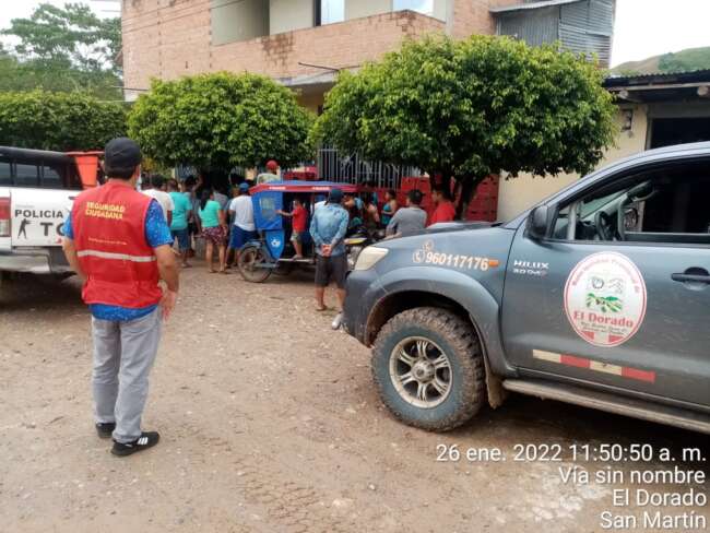 Agentes del Serenazgo de la Municipalidad Provincial El Dorado y personal policial se constituyeron al lugar del atraco y trasladaron a la víctima y a su esposa hacia la dependencia policial para que denuncien el caso. (Hugo Anteparra)