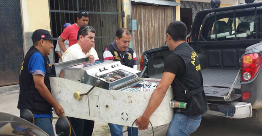 Oficiales de la Intendencia de Aduanas de Tarapoto , en coordinación con la Fiscalía Provincial Mixta de Soritor en Moyobamba, y efectivos de la Policía Fiscal, ejecutaron tres intervenciones a igual número de locales, en cuyos interiores escondían mercancías de contrabando, consistentes en máquinas tragamonedas y accesorios de cómputo, procedentes de la frontera norte del país.