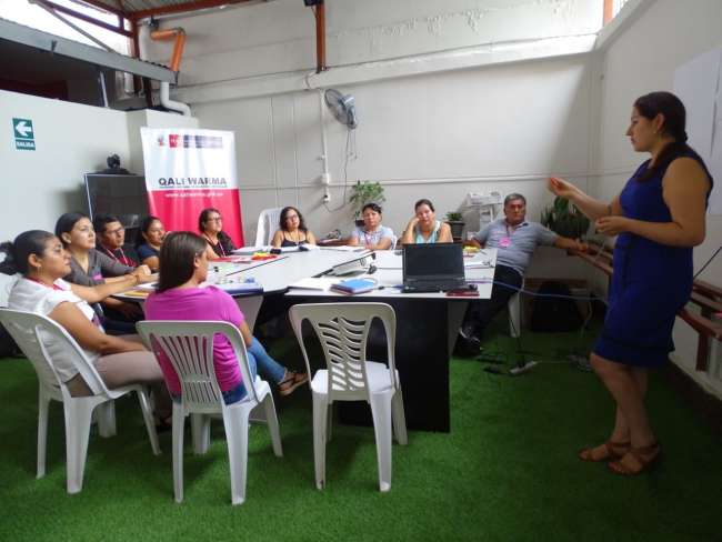 Durante la jornada de capacitación se explicó de manera práctica los temas referidos a los procesos de supervisión y liberación, verificación de la prestación del servicio alimentario en las II.EE. atendidas por el programa, atención de alertas y quejas, así como de las acciones a desarrollar en la vigilancia social.