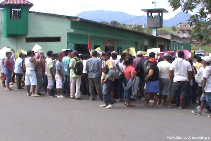 En menos de 20 días, esta es la tercera vez que un de personas llegan hasta el frontis del establecimiento penal de Tarapoto, para respaldar al imputado, quien es defendido por Benedicto Jiménez, que tras cesar de la Policía Nacional ejerce la abogacía. La audiencia se realizó en el establecimiento Penal de Tarapoto, porque uno de los imputados está recluido esta ciudad. (Hugo Anteparra)