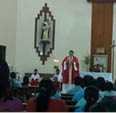 El párroco del distrito Morales Manuel Mellado, tuvo que suspender la misa de ayer domingo por la noche porque a esa hora se estaba realizando una fiesta por el Día del Maestro, y el sonido de la música no dejaba escuchar a los fieles, la palabra del Señor.