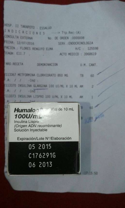 El hecho se registró ayer, cuando la paciente Elma Flores Rengifo, esposa de Linder Arévalo, por motivos de tiempo no pudo retirar un día antes los medicamentos que la nueva endocrinóloga le había recetado, entonces cuando los recogió ayer los llevó a su casa sin ver la fecha de vencimiento, segura de que el medicamento que salía de un Hospital se encontraba en buenas condiciones.