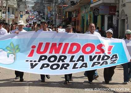 La marcha se inició con la participación de más de 2 mil personas que se congregaron en la plaza de Armas de Tarapoto, para hacer un recorrido por las calles céntricas de la ciudad, a pesar del inclemente sol de la mañana de ayer.