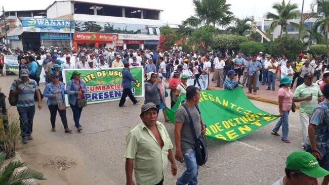 Ayer por la mañana decenas de productores de arroz de la cuenca del Bajo Mayo marcharon por las calles de Tarapoto exigiendo la libertad de sus dirigentes que fueron intervenidos el lunes por la madrugada, cuando iniciaba el paro agrario indefinido en el distrito de Nueva Cajamarca en la provincia de Rioja.