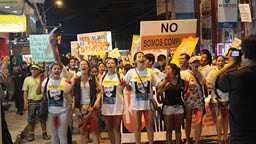 En el desplazamiento de la protesta, los manifetsantes cuando pasaban por las propiedades del parlamentario Rolando Reátegui hacía un alto para lanzar pequeños discursos o para cuestionar su postulación. En todo momento, los manifestantes estaban acompañados de la Policía Nacional y no hubo ningún intento de desestabilización de la protesta.