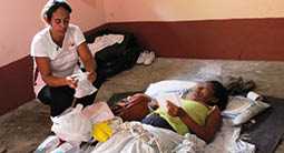 Mujer damnificada, identificada como Dorni Macahuachi Sangama de 48 años de edad, quien perdió todo a causa de las inundaciones en el distrito de Papaplaya, está postrada en casa de sus familiares adoleciendo cáncer de cérvix en grado seis y que cada día va empeorando.