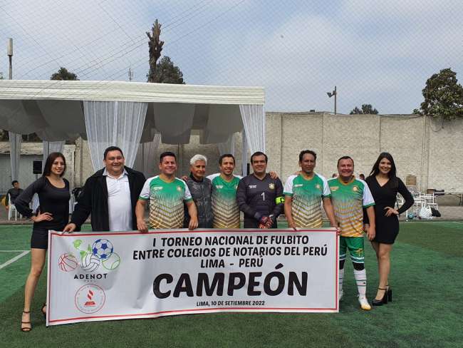 El equipo de fulbito del Colegio de Notarios de San Martín logró consagrarse como CAMPEON luego de derrotar al Colegio de Notarios de Cuzco, quienes quedaron como Subcampeones, y el tercer lugar lo ocupó el Colegio de Notarios del Callao
