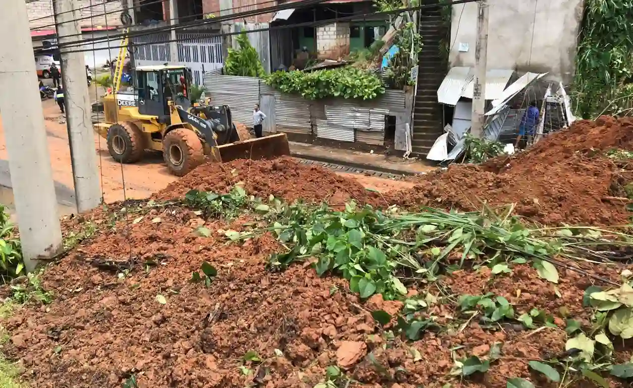 El derrumbe en un cerro obstruyó la carretera central a la entrada de la ciudad, toneladas de piedras y lodo cubrieron la vía dejando incomunicadas a las regiones San Martín y Ucayali. La Municipalidad Provincial de Leoncio Prado y el Batallón de Ingeniería 112 del Ejército Peruano han desplegado sus maquinarias para iniciar las labores de limpieza y despeje de la carretera. Este esfuerzo busca restablecer el flujo vehicular de la vía.