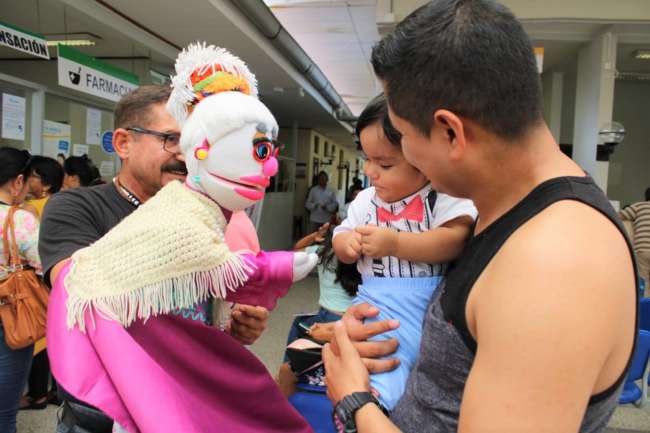 Una mañana sumamente alegre vivieron los asegurados, especialmente niños, de la Red Asistencial Moyobamba de EsSalud, quienes recibieron la visita del conocido personaje “Nicolasa”, un muy popular títere que representa a una picara abuelita.