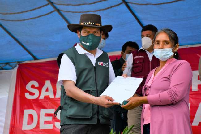 Por su parte el titular del Midagri Víctor Maita Frizancho, enfatizó el carácter de seguridad jurídica que les confiere la titulación de los predios. “El objetivo es mejorar sus ingresos económicos, sobre todo seguir impulsando la agricultura familiar en esta zona. Ahora podrán continuar con sus actividades agrícolas, además tiene la seguridad que la tierra le pertenece y le permite acceder a crédito productivo”, dijo.