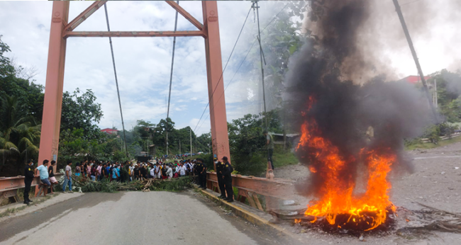 El tramo sur de la carretera Fernando Belaunde Terry fue bloqueado, a la altura del puente sobre el río Huallaga, en la ciudad de Tocache, en la región San Martín, por las Rondas Campesinas de esa provincia.