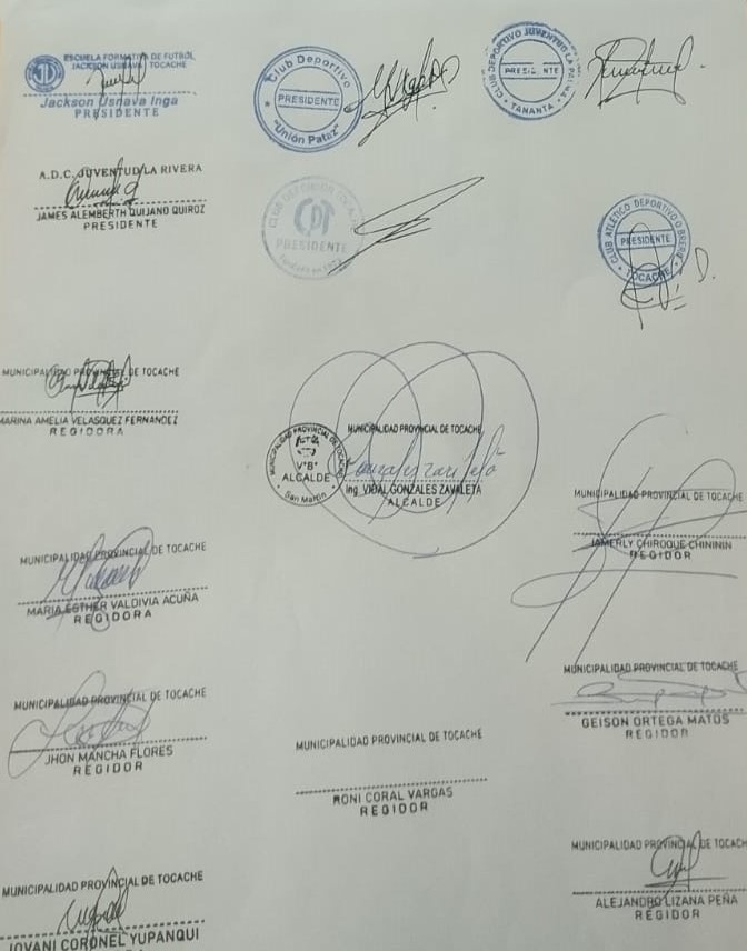 El documento de solicitud cuenta con el respaldo del alcalde provincial de Tocache, Ing. Vidal Gonzáles Zavaleta, ocho regidores y dirigentes de los principales clubes de fútbol de la zona. La presentación oficial será realizada en una próxima reunión en Lima por el actual presidente de la Liga Departamental de Moyobamba, Juan Cabrera V., quien acompañará esta demanda legítima.