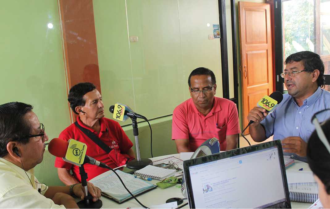 Chujutalli Reátegui, acudió a la entrevista acompañado del Prof. Ower Saboya Espinosa director de la Unidad de Acompañamiento Pedagógico y del Prof. Juan Carlos Arbildo López