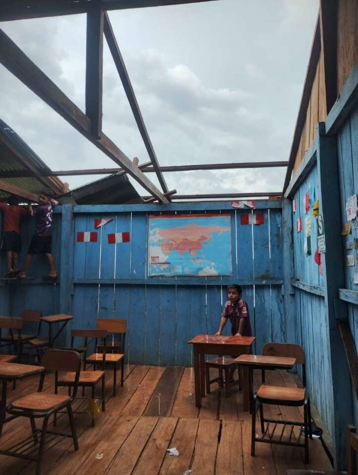 La I.E.N 0760 sufrió un desastre la tarde de ayer, la torrencial lluvias acompañadas de fuertes vientos arrasaron con el techo de la I.E.N 0760.