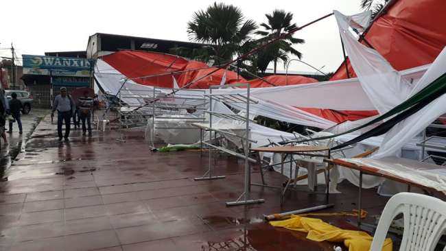 “Al principio pensamos que solo iba a ser una pequeña garúa, sin embargo en cuestión de segundos cayó una fuerte precipitación que estuvo acompañado con viento y granizada. Nosotros pensamos lo peor, gracias a Dios solo duró 15 minutos y cuando nos dimos cuenta las estructuras ya habían colapsado” manifestó Tito Salas, de la editorial Rezistencia.
