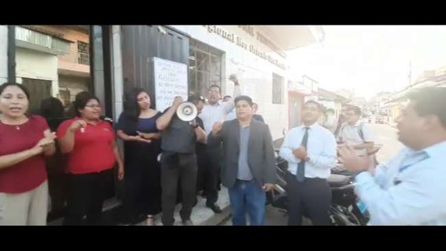Ayer por la tarde durante media hora los trabajadores sindicalistas realizaron un plantón frente a su local institucional ubicado en la cuadra cuatro del jirón Gregorio Delgado de Tarapoto, el dirigente Tomas Lara Quezada, manifestó que en 72 horas sabrán si radicalizan su medida de fuerza, luego de saber los resultados de las negociaciones con representantes del Ministerio de Economía y Finanzas.