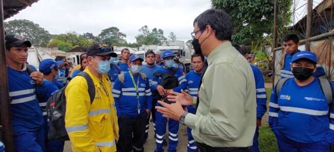 El abogado de la Municipalidad Provincial de San Martín Jhon Tafur Puertas, acompañado del Procurador y la Policía Nacional, llegaron ayer a las instalaciones de la Unidad de Residuos Sólidos, con el fin de dialogar con los trabajadores para evitar interrumpir la labor de otros colegas de baja policía que no desean acatar paro de labores.