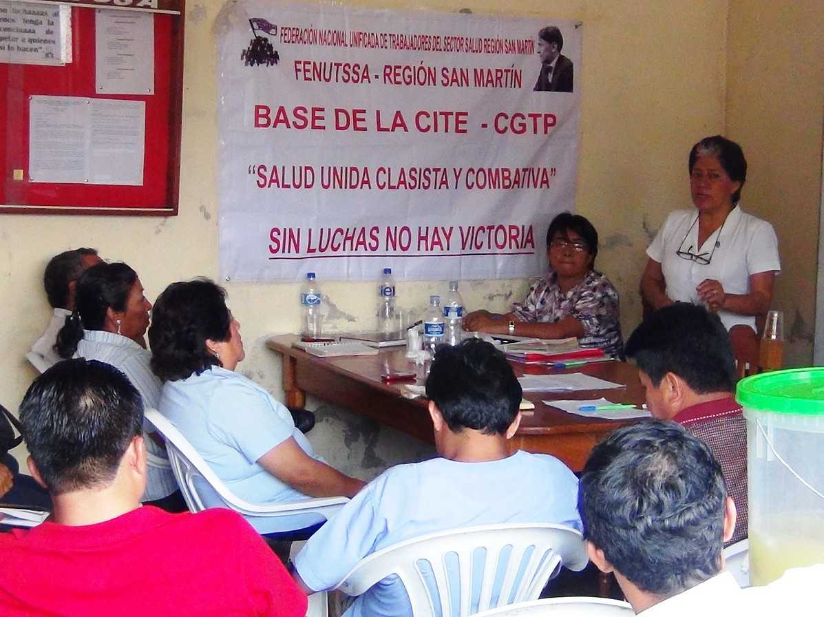 Ayer por la mañana, los dirigentes sindicales de nueve provincias de la región a excepción de Moyobamba, se reunieron en el local de la FENUTSSA de Tarapoto, a fin de evaluar la propuesta nacional de iniciar la huelga el próximo 18 de setiembre, quedando aprobado por unanimidad, es por ello que eligieron al comité de lucha, presidido por César Fasanando.