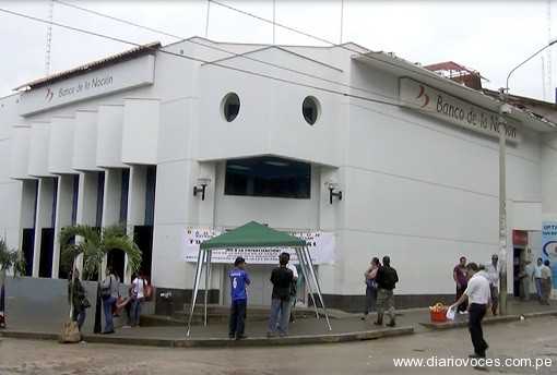 Trabajadores del Banco de la Nación de Tarapoto, acatan un paro de 48 horas a nivel nacional, para evitar que el gobierno privatice esa entidad financiera, los manifestantes permanecen en los exteriores, con el temor de ser desalojados por la Policía Nacional, sin embargo las agencia de Morales y La Banda de Shilcayo vienen atendiendo sin ningún inconveniente..