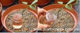 PLANTA DE SACHA INCHI. Aplican soluciones nutritivas