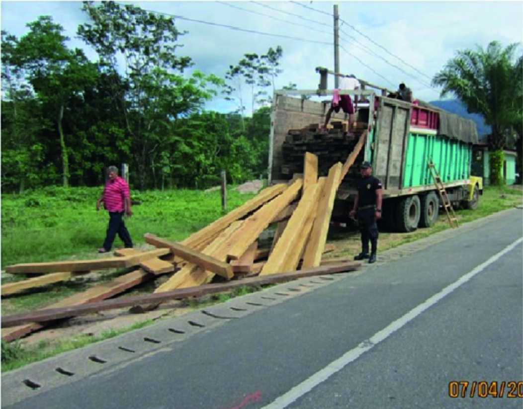 Al momento de la intervención policial, el conductor del camión identificado como César Adriano Asenjo Vilchez de 52 años de edad, natural de Chiclayo, no pudo sustentar la procedencia de la madera de las especies papelillo Y huayruro, que estaban aserradas, siendo prohibido este tipo de corte, motivo por el cual los representantes de la Autoridad Ambiental Regional ordenaron su incautación.