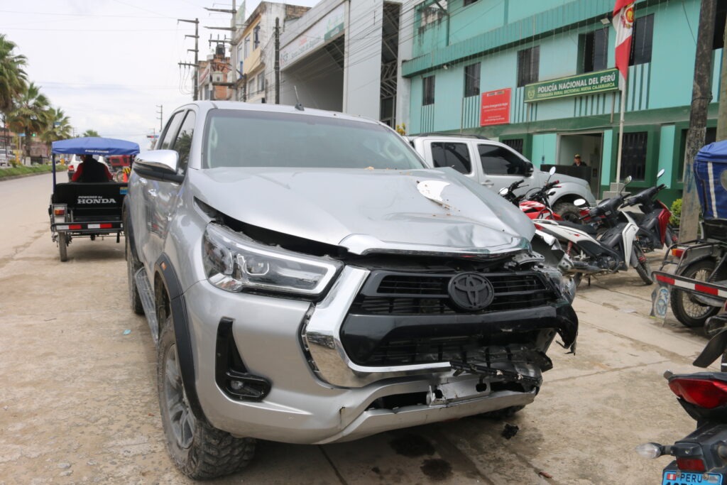 En los exteriores de la comisaría de Nueva Cajamarca, VOCES constató el estado de la camioneta que originó la tragediaun vehículo nuevo, aún sin placa – presuntamente en trámite, con lunas polarizadas. Sobre el capot delantero, aún se encontraba restos de la torta que los fallecidos llevaban en el momento de la tragedia, una lata de cerveza aun en el interior del vehículo, detalles que humaniza el drama y evidencia el nivel de imprudencia involucrado.