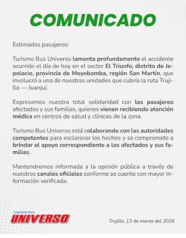 El más reciente ocurrió la mañana del viernes 13 de marzo, cuando un bus de la empresa Turismo Bus Universo sufrió un despiste y cayó a una pendiente en el sector Jerillo, en la conocida “Curva del Diablo”, en el tramo Moyobamba – Tarapoto.