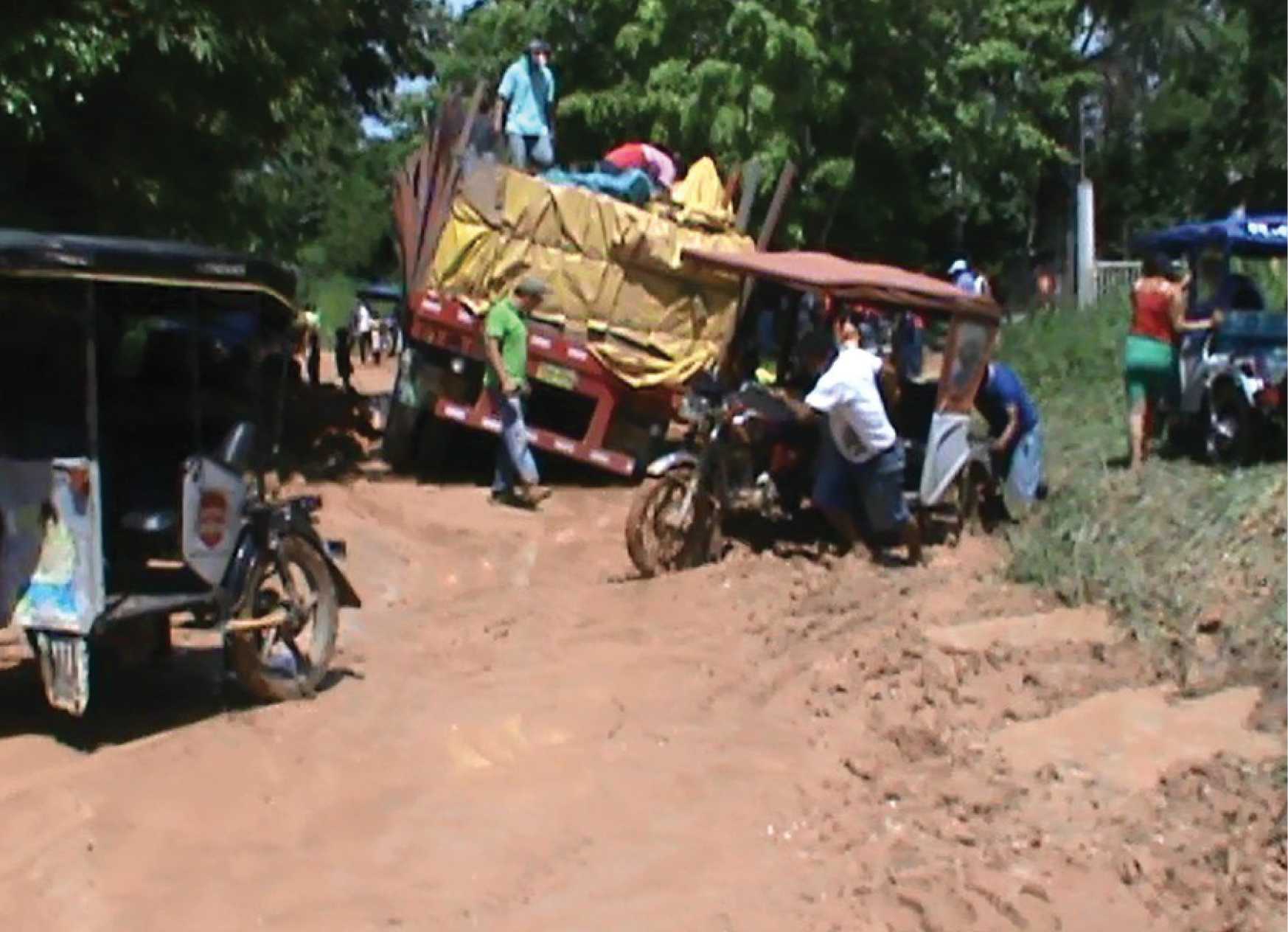 El viernes 14 de noviembre, más de 6 horas se quedaron varados vehículos entre menores y mayores, muy cerca de Yurimaguas, por el atasco, de un camión tráiler que transportaba ladrillos a Munichis, para de infraestructura educativa.